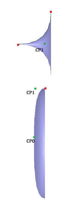 圖2.導光管側面視圖,綠色的點(CP0, CP1)是將要在優化中被修改的控制點