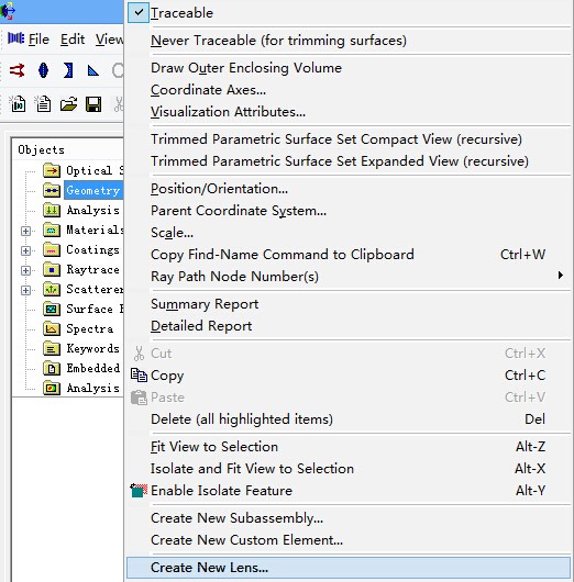 在樹(shù)形文件夾中選擇Geometry>Create a New Lens
