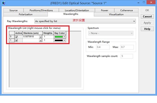 波長(zhǎng)設(shè)定,顏色選為綠色