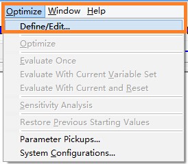 打開(kāi)Optimize選擇Define/Edit進(jìn)行準(zhǔn)直優(yōu)化