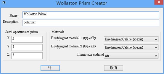 圖3. 沃拉斯頓棱鏡創(chuàng)建對(duì)話框