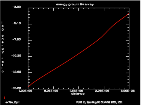 在瞬態拉曼效應的模擬過程中有一個關鍵問題需要解決,那就是如何處理自發輻射的角度。更精細的空間采樣就可以考慮更大的立體角。在本例中,我們只考慮初始10ps的作用過程,這樣瞬態增益將會比穩態增益小很多。模擬過程中我們將傳播距離分30步完成,每一步1km,每一步綜合考慮自發拉曼效應、受激拉曼效應以及衍射效應。
