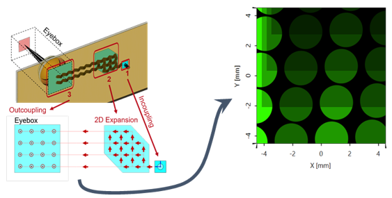 針對AR,VR以及MR應(yīng)用,VirtualLab Fusion為用戶提供了多通道波導(dǎo)成像系統(tǒng)的非序列建模技術(shù),建模過程中能夠?qū)Σㄇ安睢⒛芰饕约癙SF/MTF進行評估。