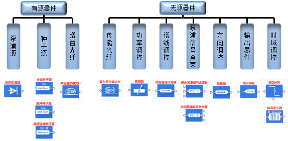 涵蓋泵浦源,種子源,如連續/脈沖種子源,單頻連續種子源,增益光纖如雙包層摻鐿光纖等