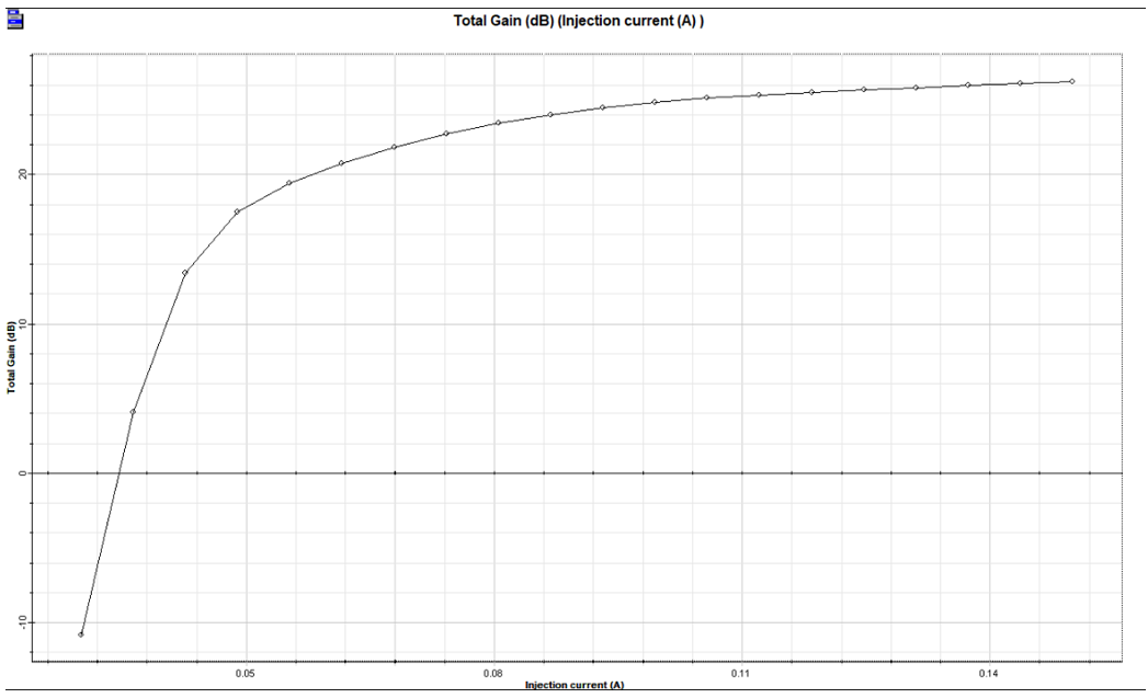 在第二部分中,注入電流參數(shù)從30 mA到150 mA變化。輸入信號功率保持在- 30dbm。