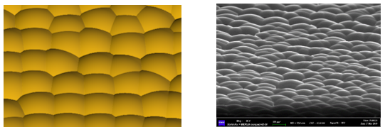 左圖:基于VirtualLab Fusion構建的非周期微透鏡陣列     右圖:加工所獲得的工程勻光片