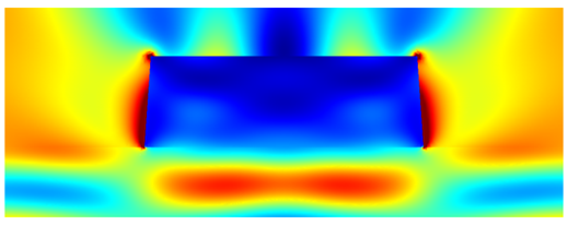 光柵被斜入射S和P偏振平面波照亮。JCMsuite計算近場分布。下圖顯示了當波長為193nm時,平面波從襯底側垂直入射到結構內的近場強度